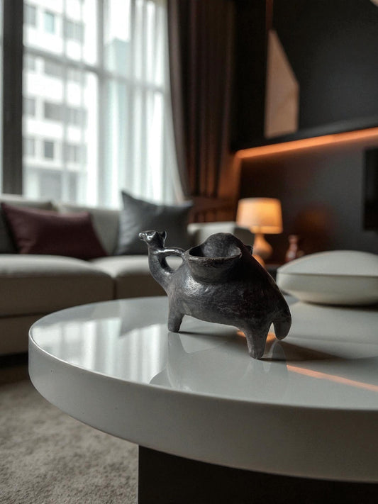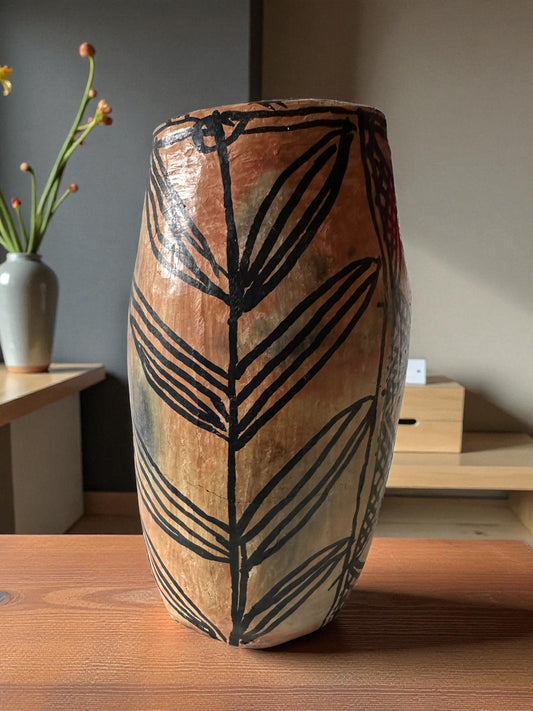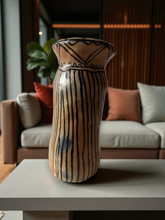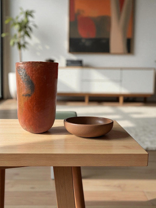 Jedes Stück ist ein Unikat mit einzigartiger Ausdruckskraft. Der Ton kommt aus der Region, und die Farben entstehen durch Mineralien und Pflanzenextrakte. Gebrannt wird traditionell auf dem Holzfeuer.